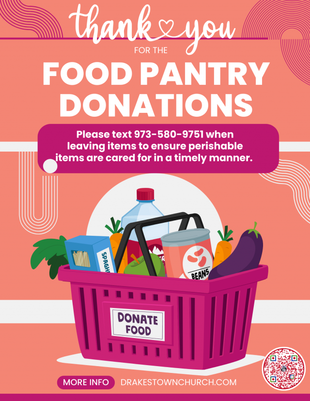 ​​​​​​​may be left in the box by the front door of the Friendship Hall. Please text 973-580-9751 when leaving items to ensure perishable items are cared for in a timely manner.