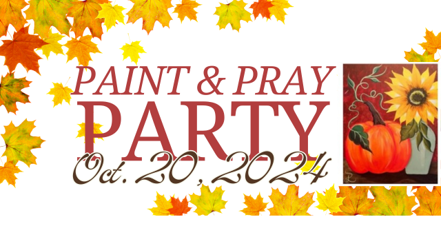 All are welcome to join us at our Family Paint & Pray Party on Oct. 20, 2024; time 12-2 PM. Please register ahead of time.